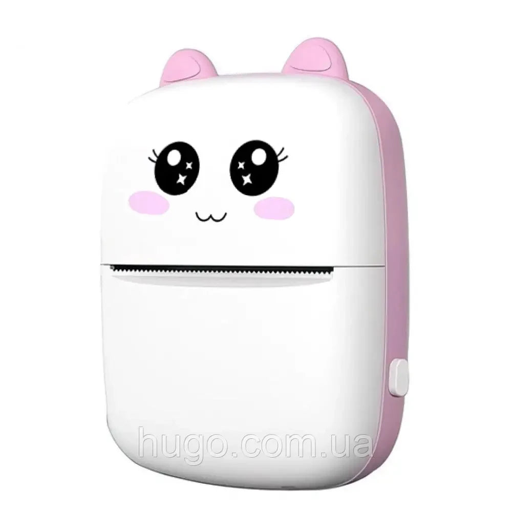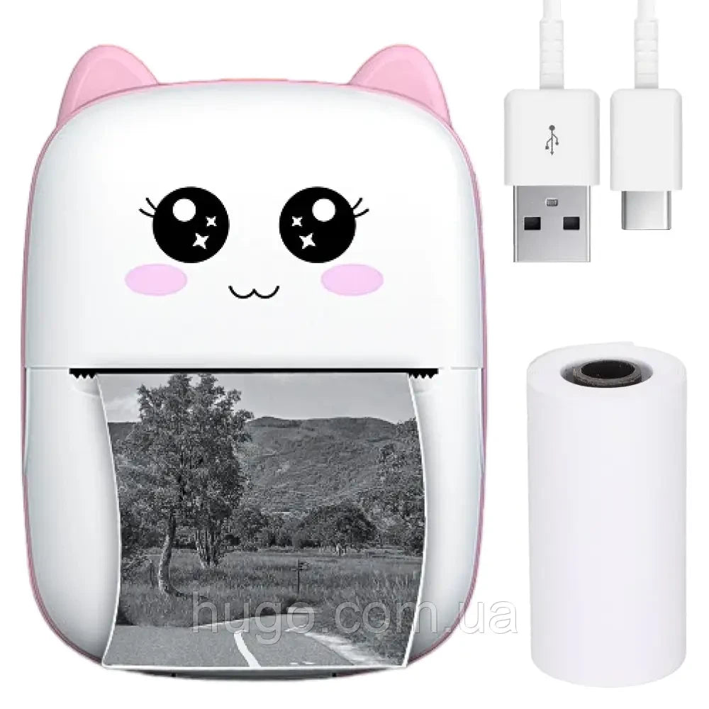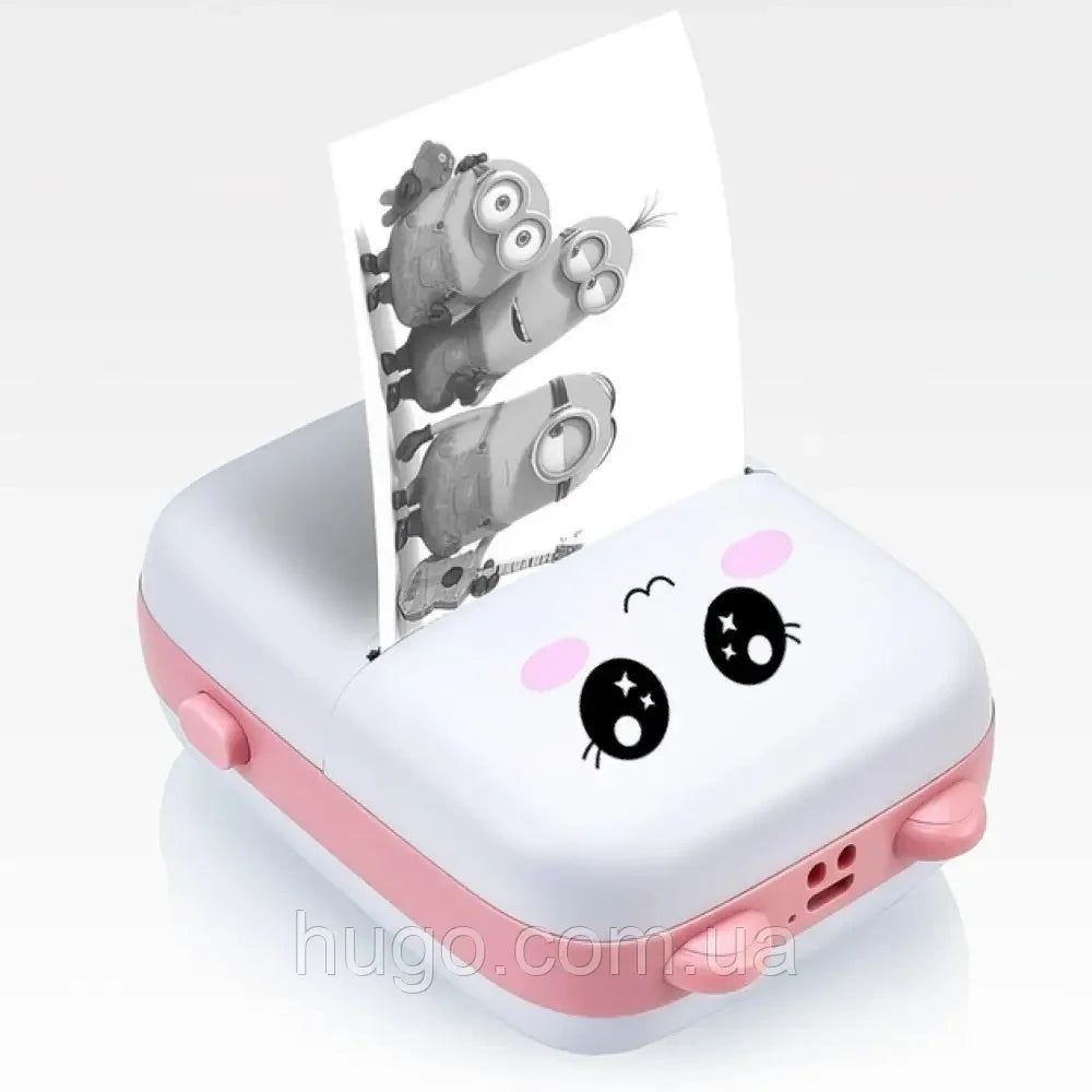 Портативний міні принтер з Bluetooth + рулон термопаперу, Рожевий / Дитячий термопринтер / Фотопринтер