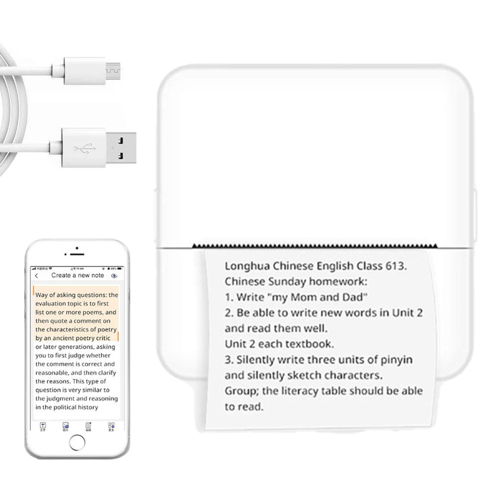 Портативний переносний принтер має автономне живлення від вбудованого акумулятора, одного заряду вистачає на роздрук чотирьох рулонів термопаперу. Заряджання передбачене від USB-порту або зарядного блоку 5 В. Кишеньковий принтер для телефону дозволить надрукувати етикетку, чек, бейдж, записку або фотографію у будь-якому місці зі свого смартфона.