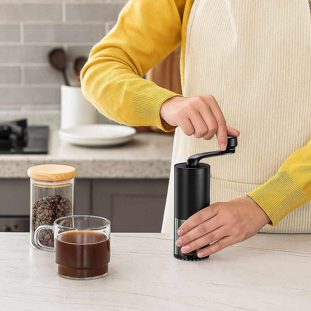 Відчуйте себе справжнім баристом із ручною кавомолкою! Цей елегантний та функціональний аксесуар дозволить вам повною мірою розкрити потенціал кавових зерен. Виготовлена з міцних матеріалів, вона прослужить вам довгі роки, радуючи бездоганним помелом. Компактний розмір робить її ідеальною для подорожей та невеликих кухонь. Легко регулюйте рівень помелу, щоб досягти ідеального смаку для будь-якого способу заварювання – від насиченого еспресо до ніжного френч-пресу.