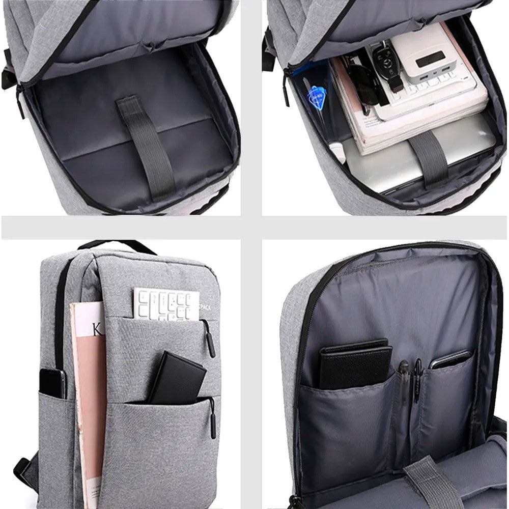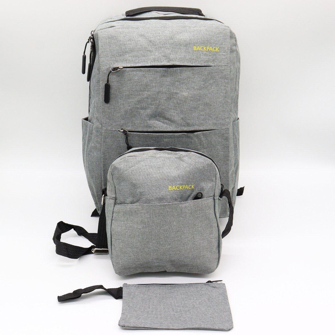 Рюкзак міський, 18л, 42х33х10 см, з сумкою та гаманцем 9018, Сірий / Місткий рюкзак для ноутбука