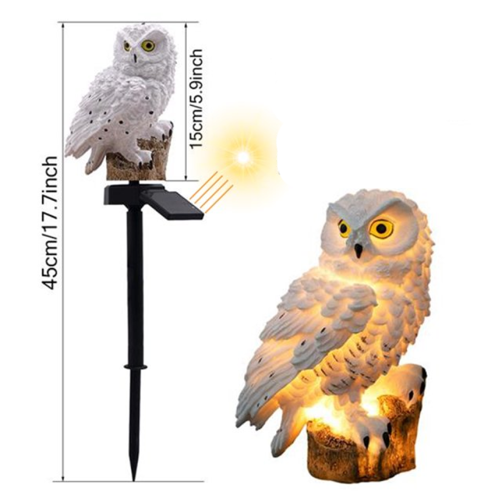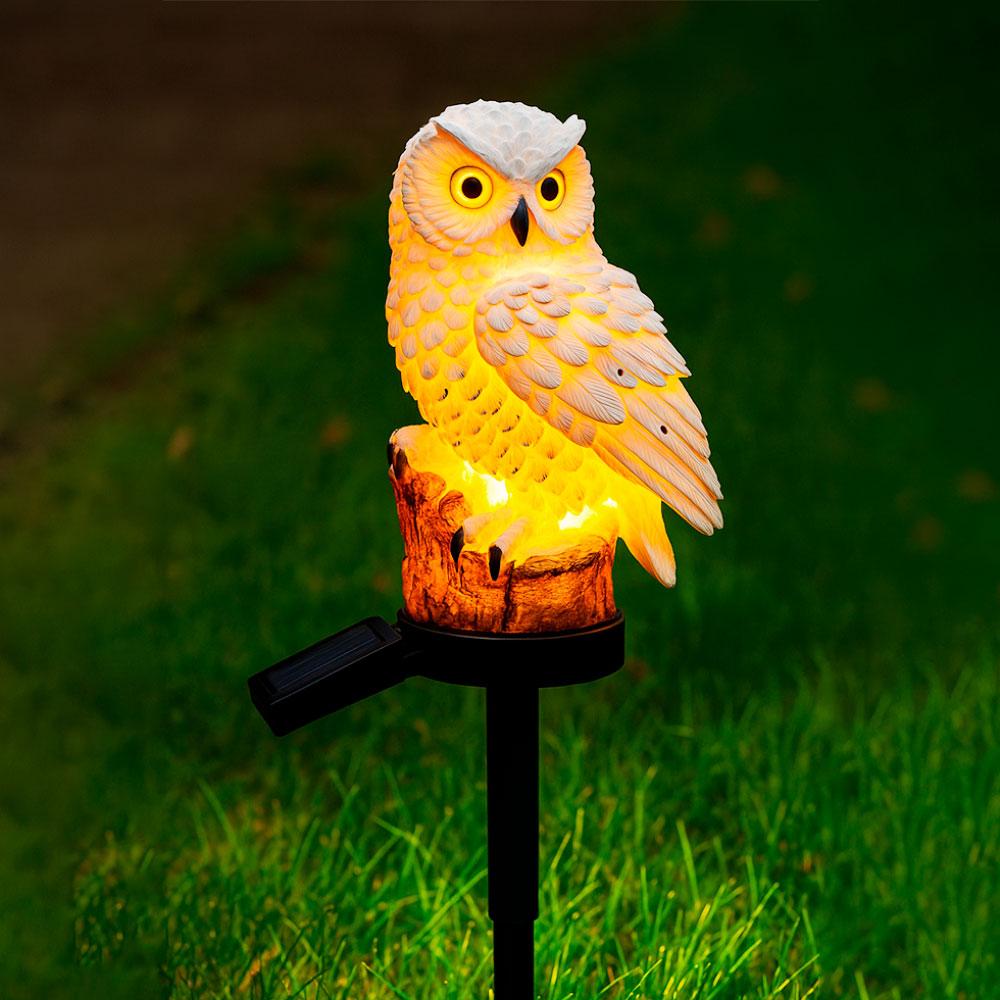 Садовий світильник на сонячній батареї 41см, Сова, Білий / Газонний ліхтар / Вуличний ліхтар для саду