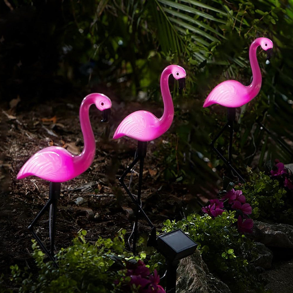 Садові ліхтарі на сонячній батареї "Фламінго" (комплект 3 шт) / Вуличний світильник на акумуляторі / Декоративний ліхтар