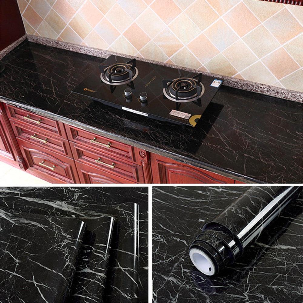Самоклеюча плівка 5м чорний мармур для кухні Kitchen Sticker / Мармурова наклейка на кухонний фартух