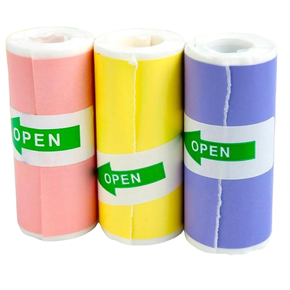 - Термопапір для міні-принтера, самоклеючий, комплект з трьох кольорів, 57x25 мм