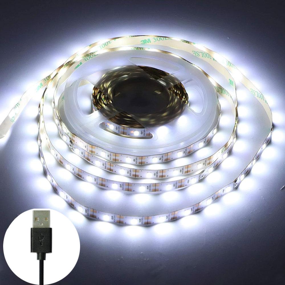 Світлодіодна стрічка 5м, від USB, Холодний Білий / Діодна стрічка від повербанка / Лед підсвітка для дзеркала