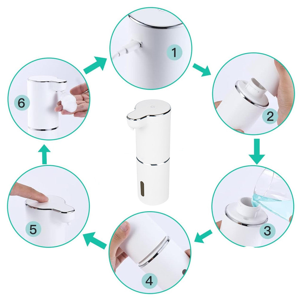Працює дозатор на акумуляторі ємністю 1200 мАг, забезпечуючи тривалий час використання на одній зарядці. Повна зарядка пристрою займає всього 3 години та здійснюється через USB, що робить його зручним для дому та офісу. Прозорий резервуар об'ємом 350 мл дає змогу легко контролювати рівень мила, а міцний пластиковий корпус гарантує довговічність. Дозатор ідеально підходить для рідкого мила, гелю або дезінфікуючого засобу, створюючи комфорт та чистоту у кожному вашому дні.