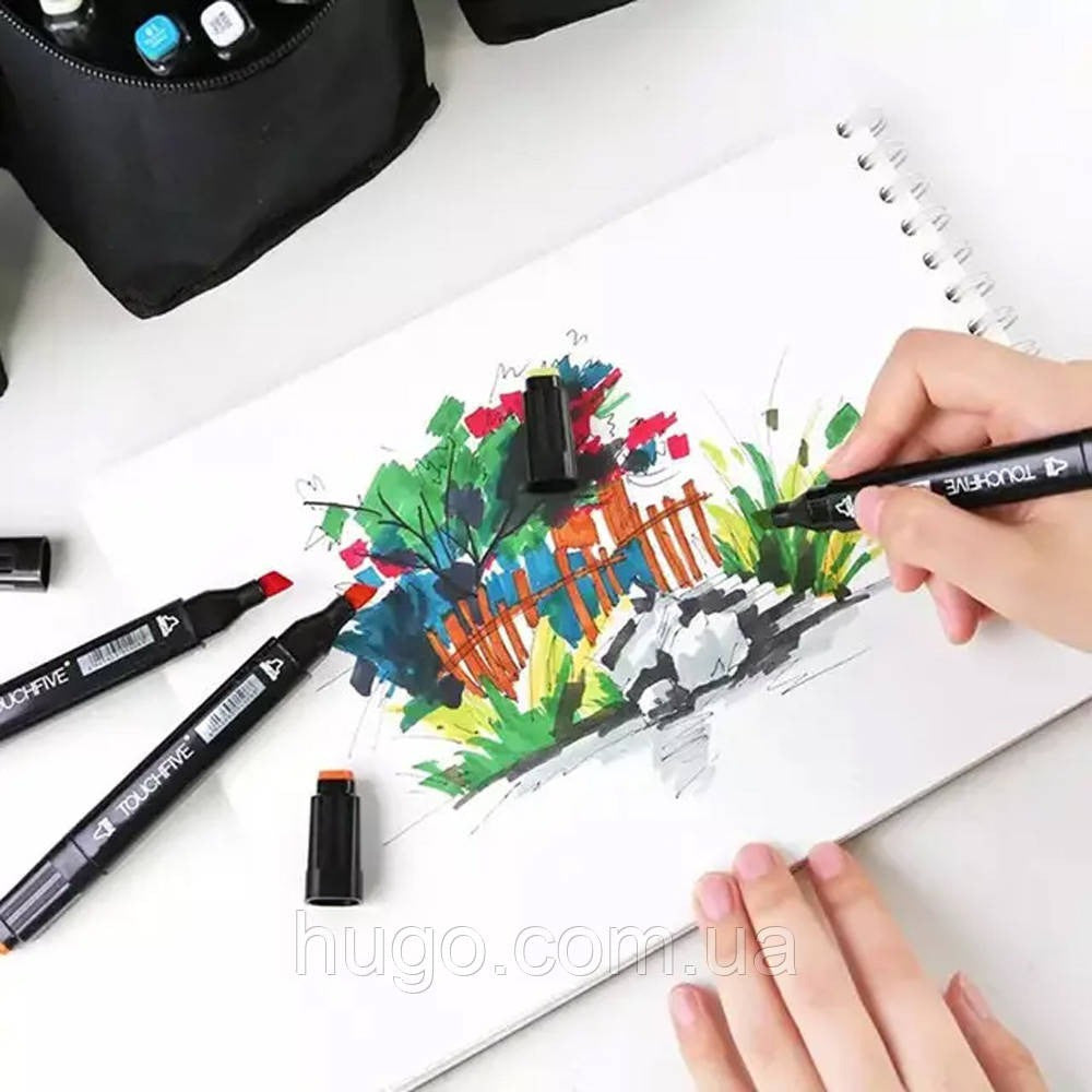 Маркери для скетчінгу зручні у використанні та можуть бути використані для малювання на папері, картоні, дереві та інших поверхнях. Цей набір маркерів містить різних кольорів, що дає змогу вам вибирати із широкого спектра відтінків для створення яскравих і мальовничих витворів мистецтва. Він також ідеально підходить для художників, ілюстраторів, дизайнерів і всіх, хто захоплюється малюванням.