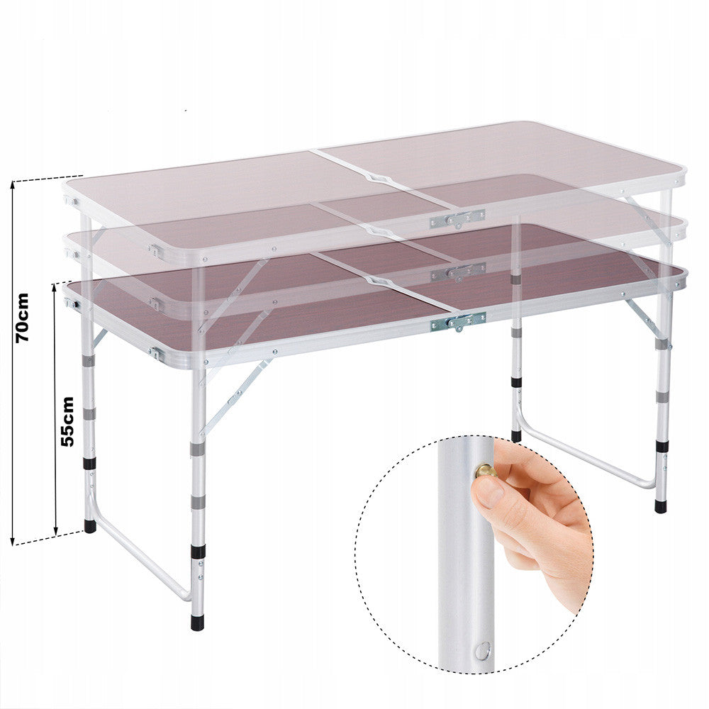Облаштуйте чудовий відпочинок на природі зі складним столом для пікніка та стільцями. Цей компактний та легкий у складеному вигляді стіл стане незамінним супутником у походах, кемпінгах або просто для пікніків у парку. Його розміри забезпечують достатньо простору для приготування їжі або дозвілля з компанією. Міцна конструкція із матеріалу гарантує довговічність і стійкість навіть при активному використанні.