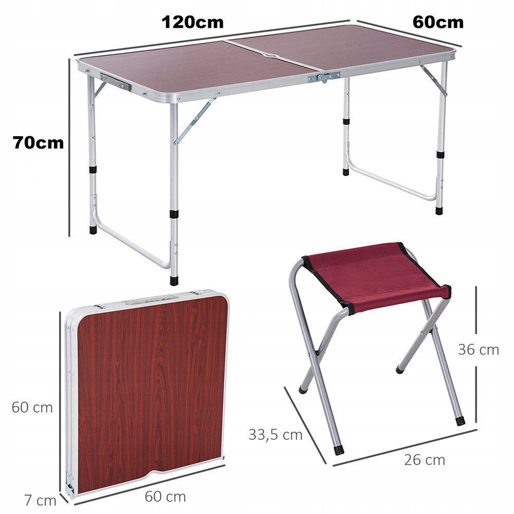 Складний стіл для пікніка 4 стільця, 120х70х60см, Коричневий / Туристичний стіл розкладний / Стіл для кемпінгу