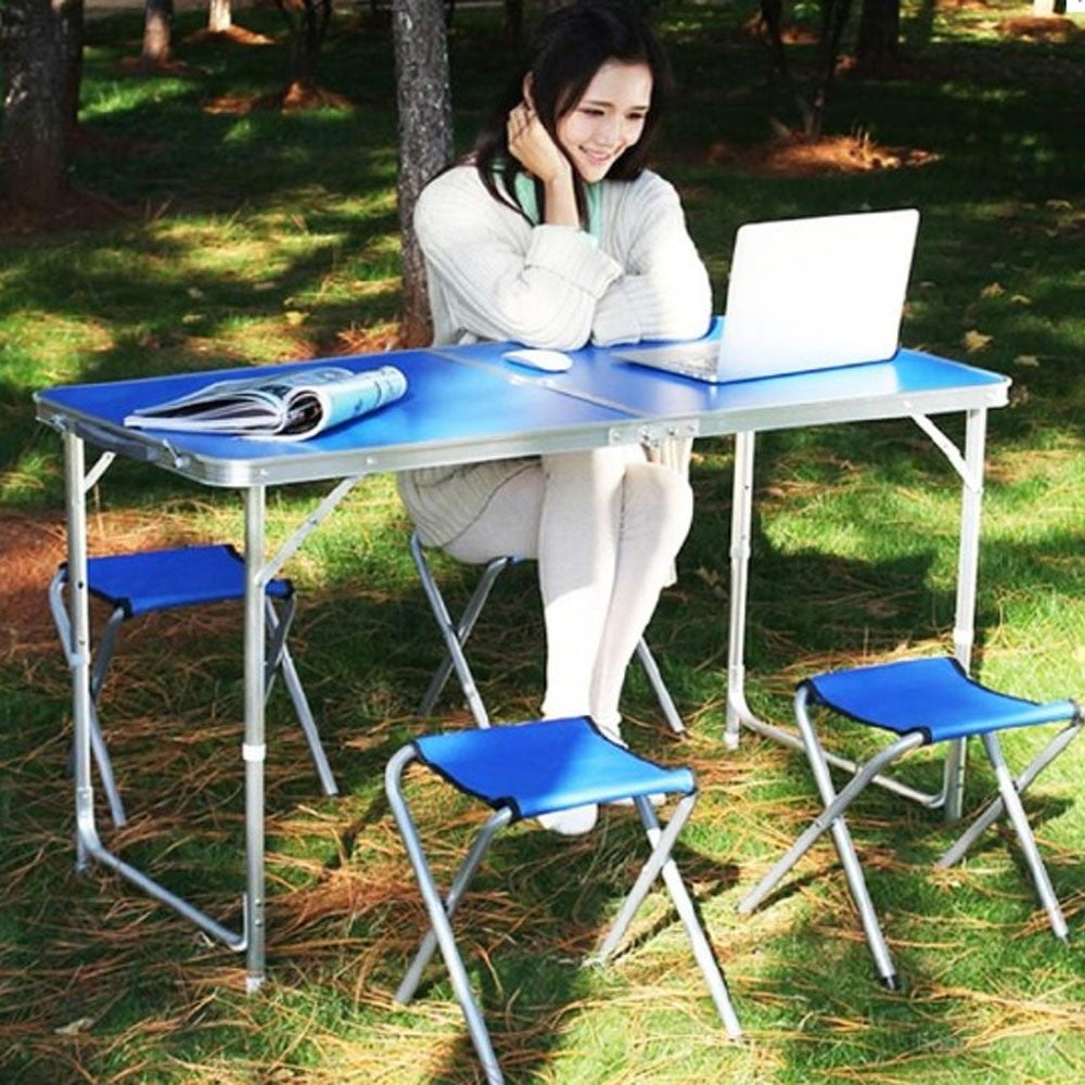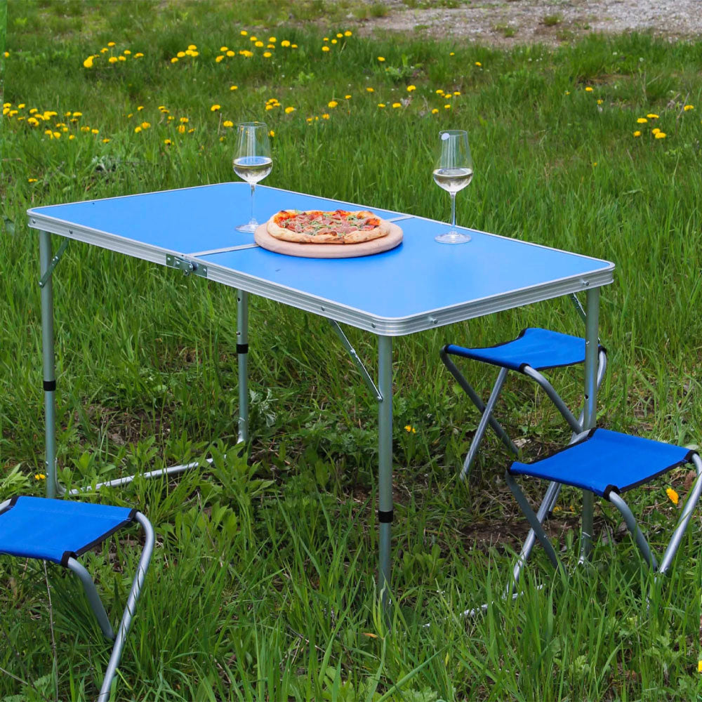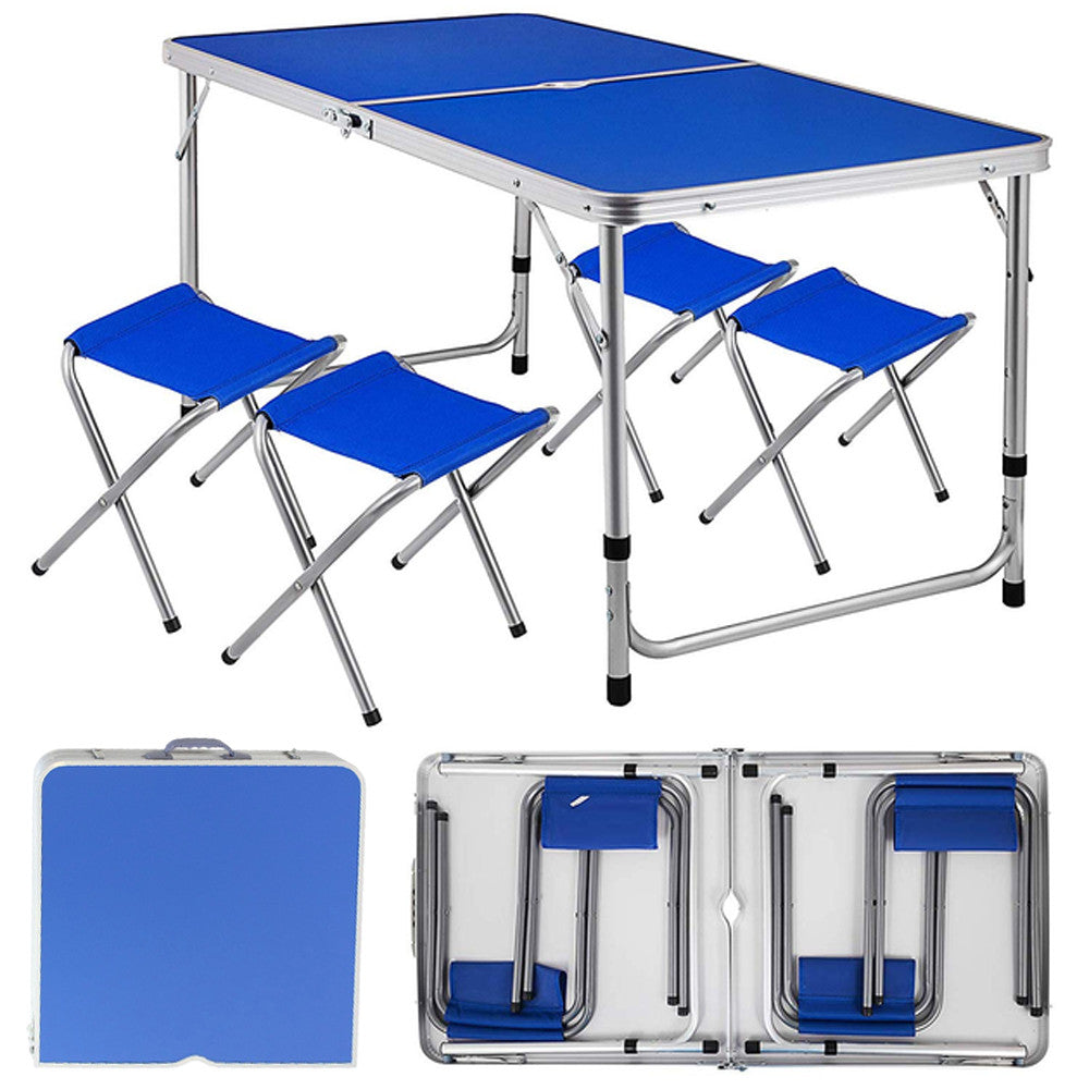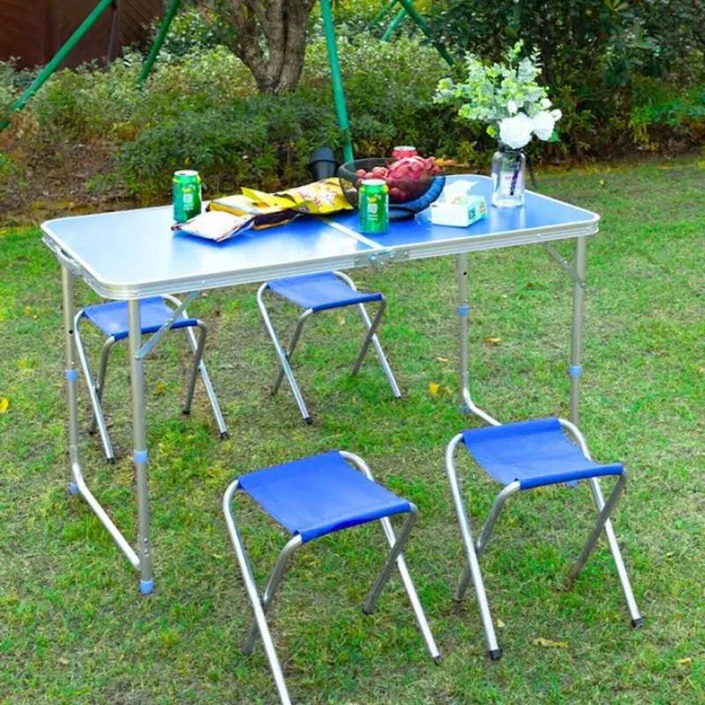Складний стіл для пікніка 4 стільця, 120х70х60см, Синій / Туристичний стіл розкладний / Стіл для кемпінгу