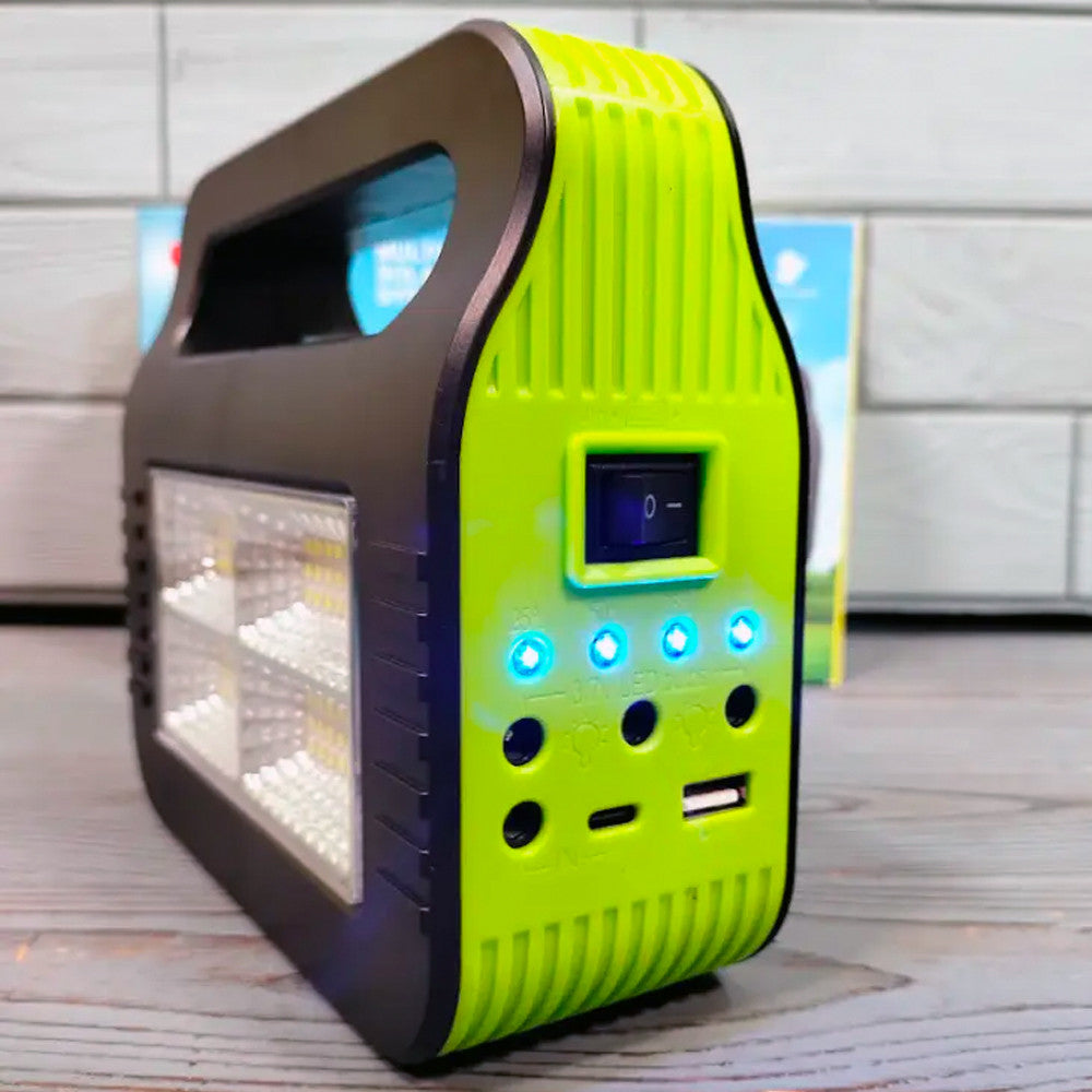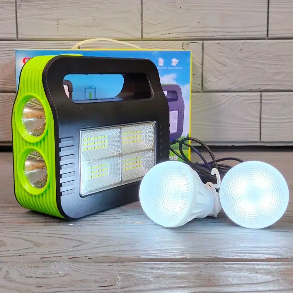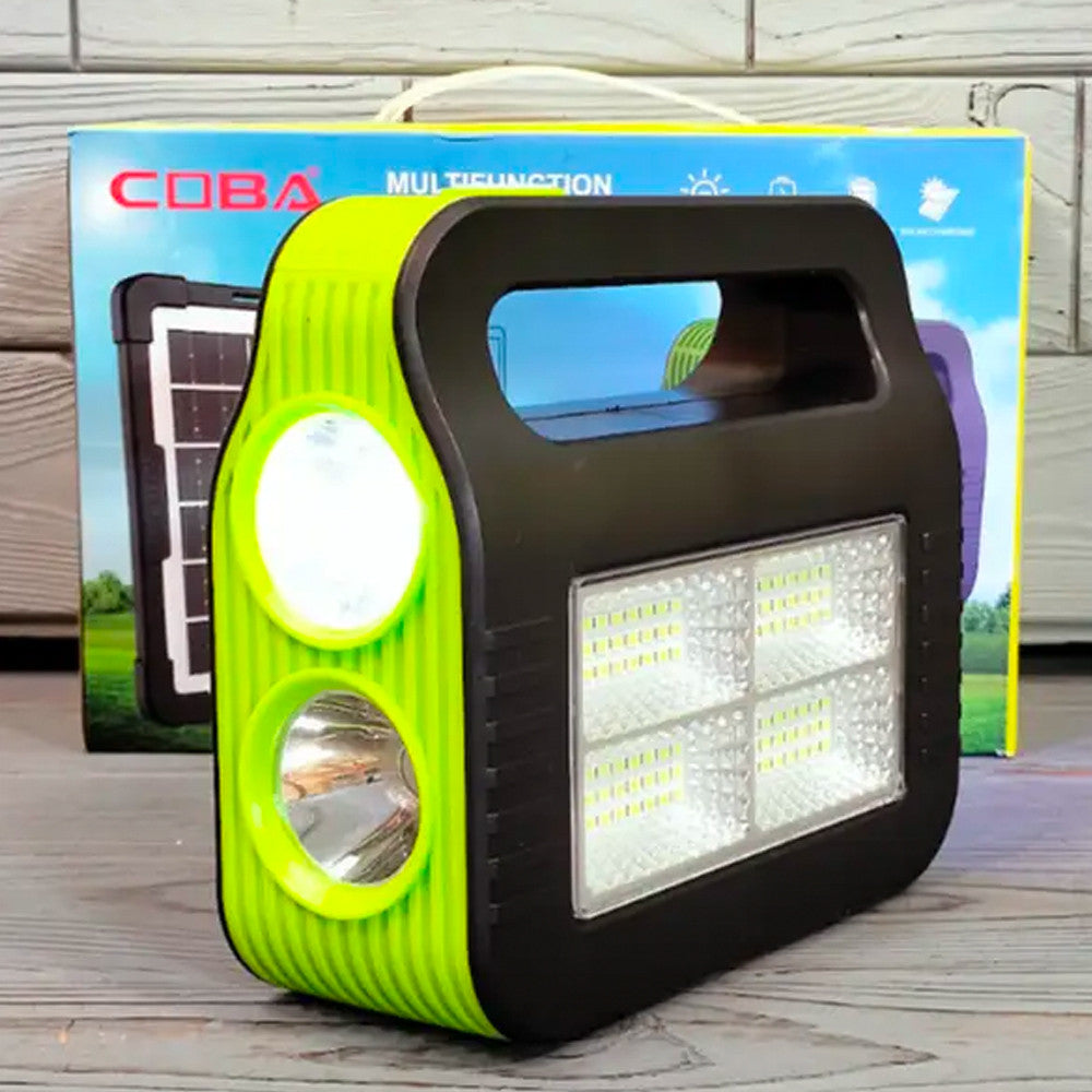 Сонячна зарядна станція-ліхтар із PowerBank + 2 лампочки, COBA CB-999B, Зелений / Ліхтар акумуляторний