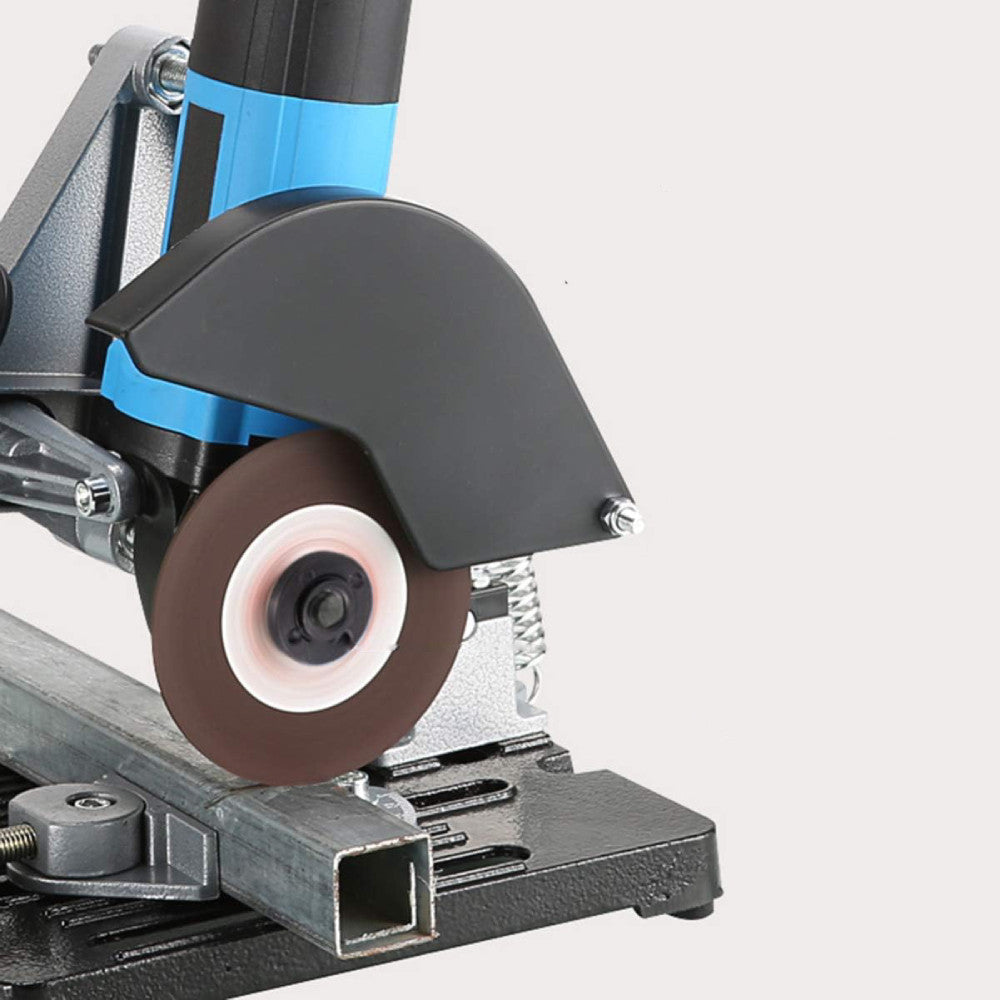 Перетворіть свою портативну кутову шліфувальну машину у відрізний верстат для різання металу, пластику, дерева. Стійка для ушм оснащена тисками з кулачковим затискачем, які регулюються. Пружинне повернення та вбудований захист від стружки забезпечують відмінну безпеку та зручність. Може використовуватись з усіма кутовими шліфувальними машинами 115/125 мм.
