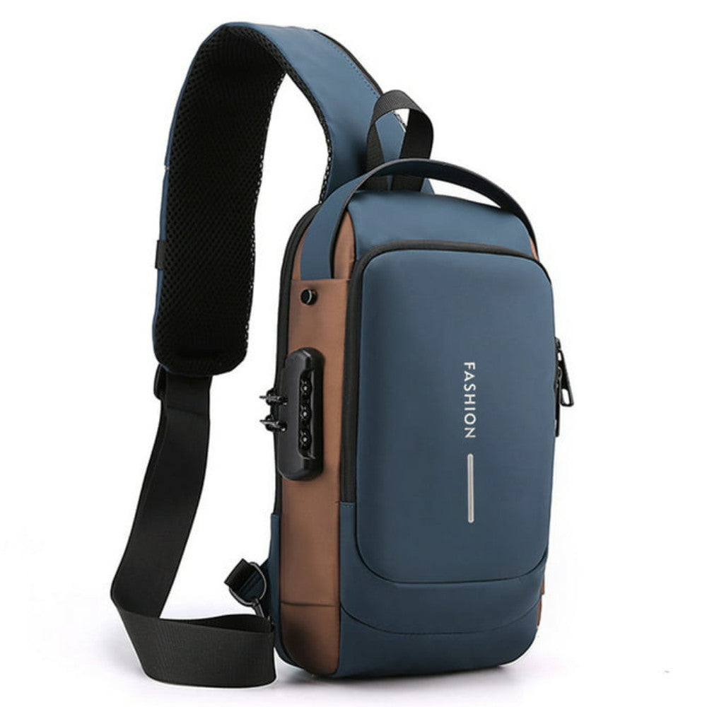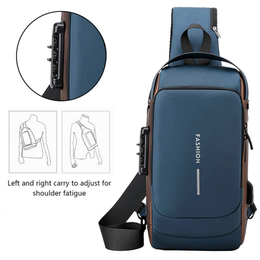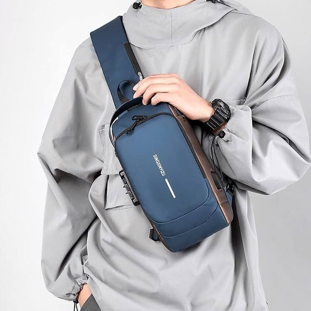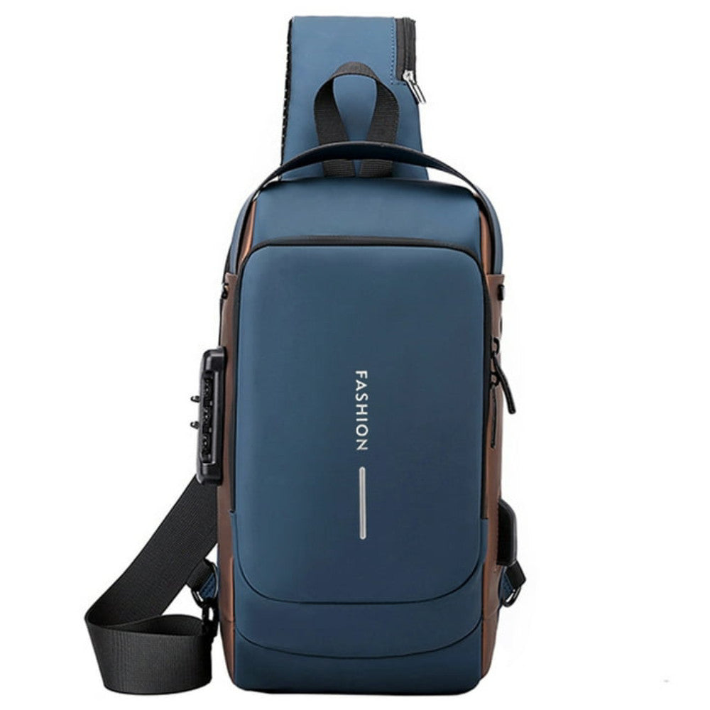 Сумка-рюкзак через плече (31х17см) 6995, з кодовим замком, Синя / Водонепроникна чоловіча сумка