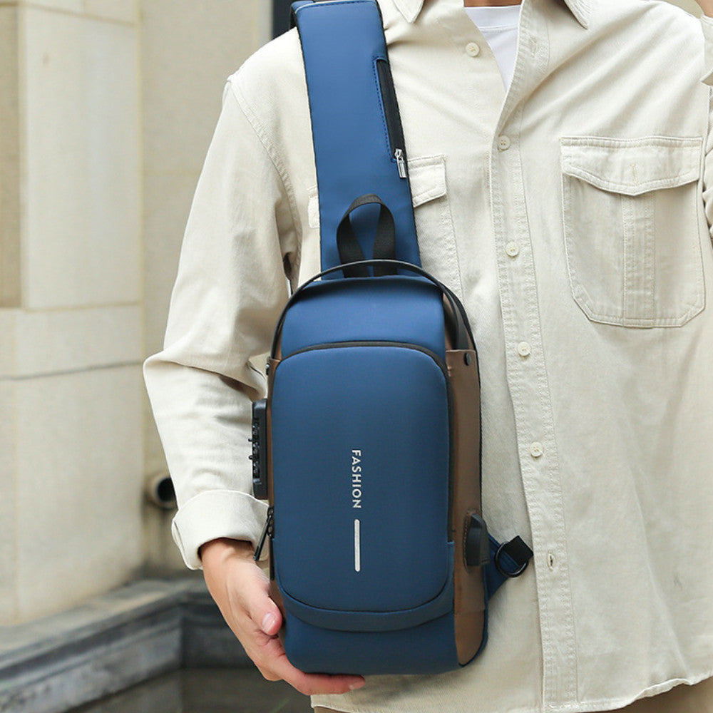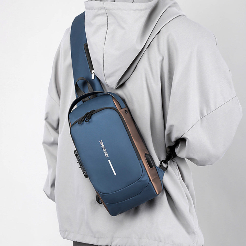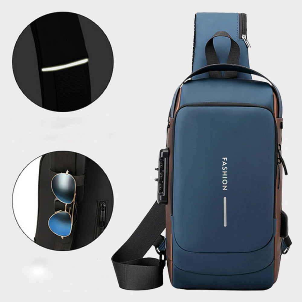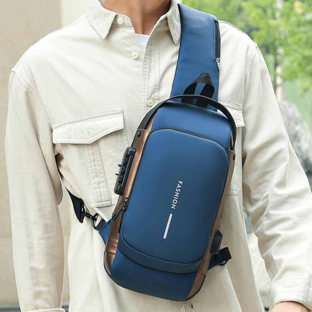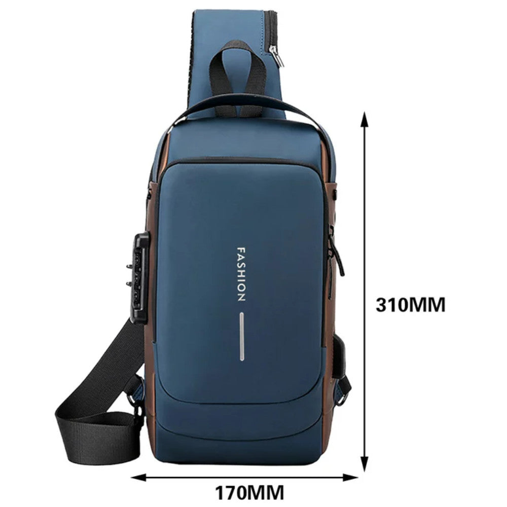 Сумка-рюкзак через плече (31х17см) 6995, з кодовим замком, Синя / Водонепроникна чоловіча сумка