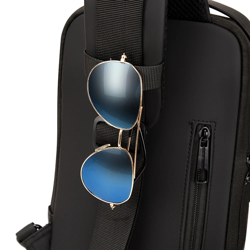 Рюкзак оснащений додатковою короткою ручкою для зручності перенесення рук. Довгий наплічний ремінець за допомогою карабінів можна перестебнути на більш комфортний для Вас бік. Особливістю даної моделі є кодовий замок, який блокує блискавку основного відділу. Також слінг має роз'єм для проводу USB, що дозволяє зручно заряджати телефон, не ховаючи його в сумку.