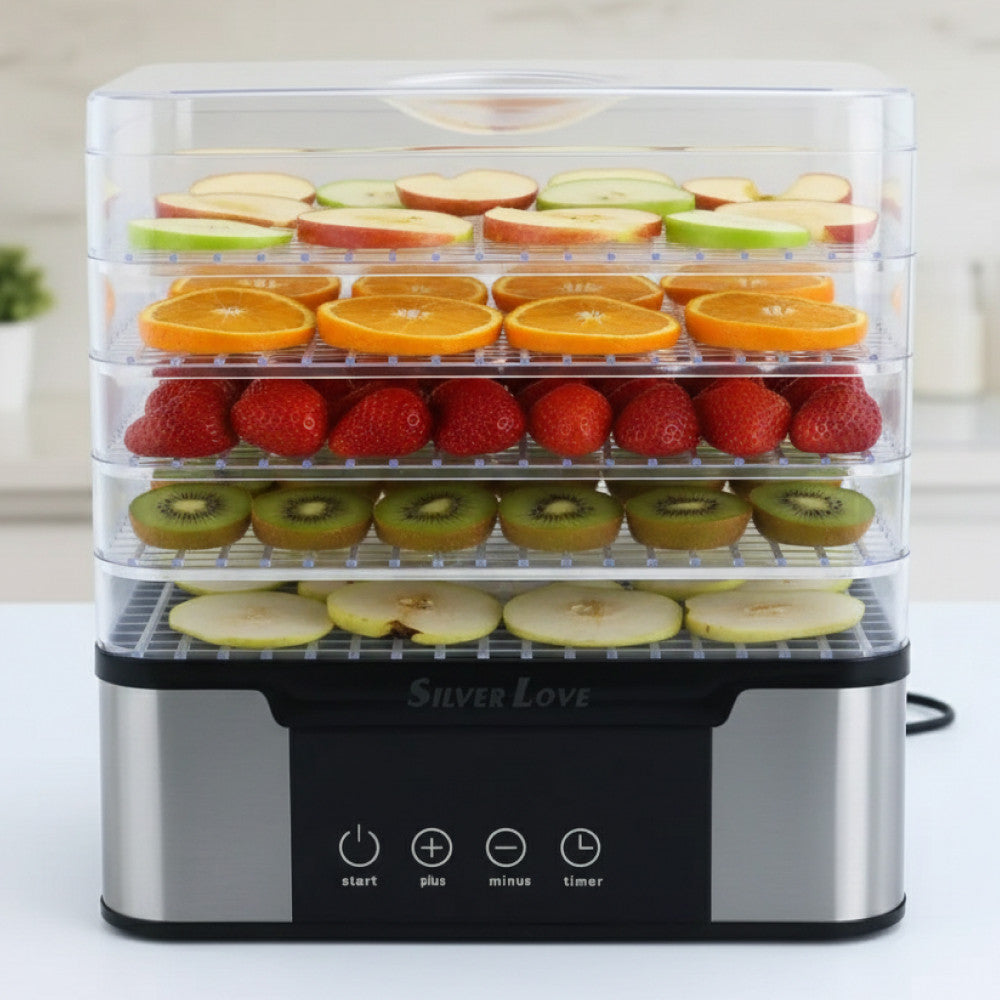 Сушарка для фруктів та овочів 5 ярусів Silver Love RB-912 / Дегідратор / Електросушарка для фруктів