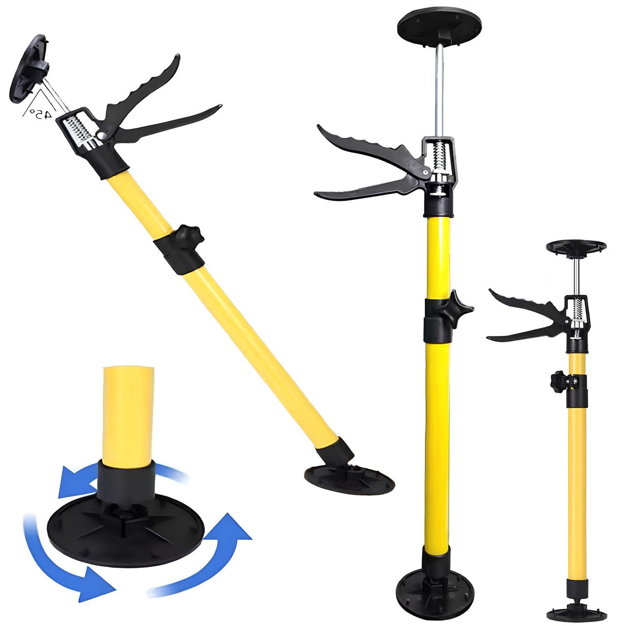 Цей телескопічний домкрат виготовлений з високоміцних металу та пластику, гарантуючи довговічність і стійкість до навантажень. Здатний витримувати вагу до 40 кг, що робить його ідеальним інструментом для підняття та утримання важких меблів, таких як шафи, під час монтажу. Особлива конструкція з нейлоновою підставкою, що обертається на 360°, забезпечує максимальну маневреність і зручність роботи в обмеженому просторі.