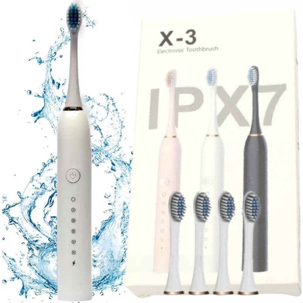 Ультразвукова зубна щітка з 4-ма насадками, Х-3, Біла / Електрична зубна щітка