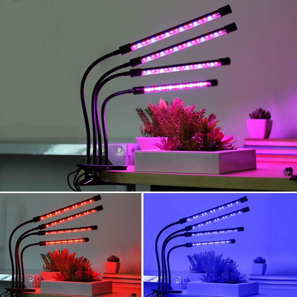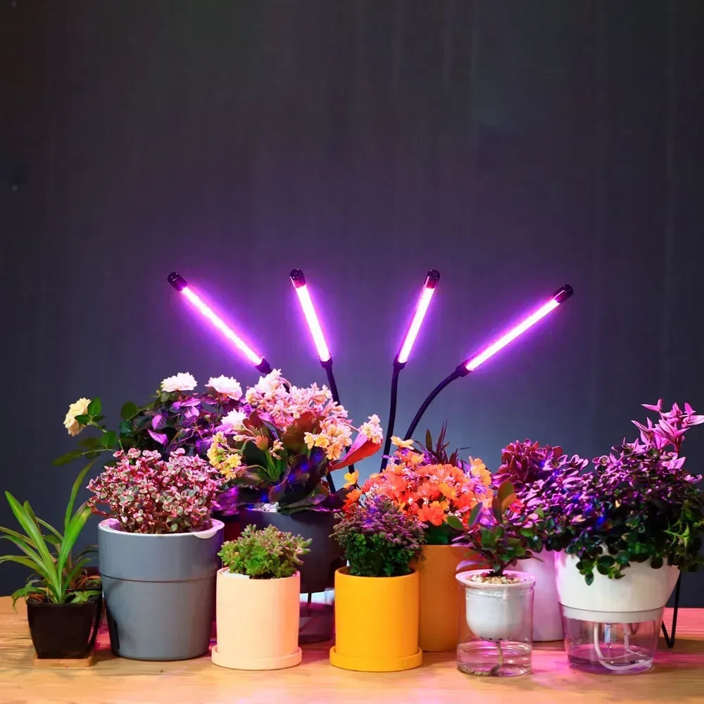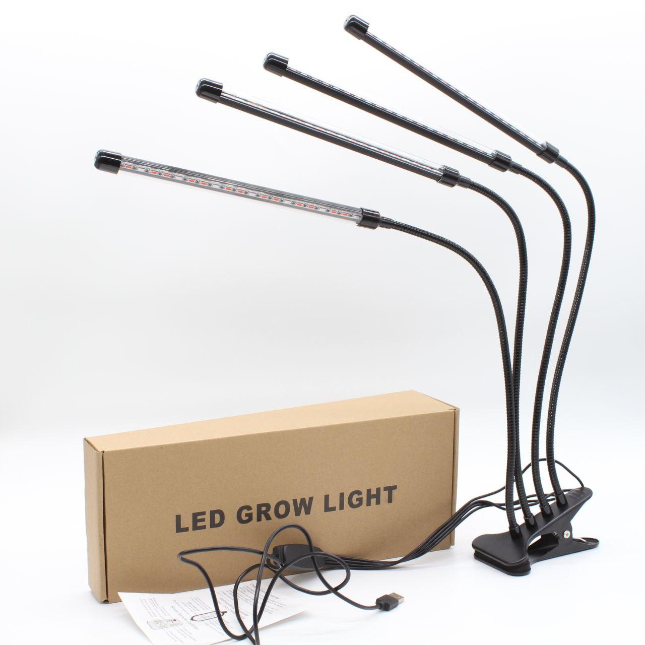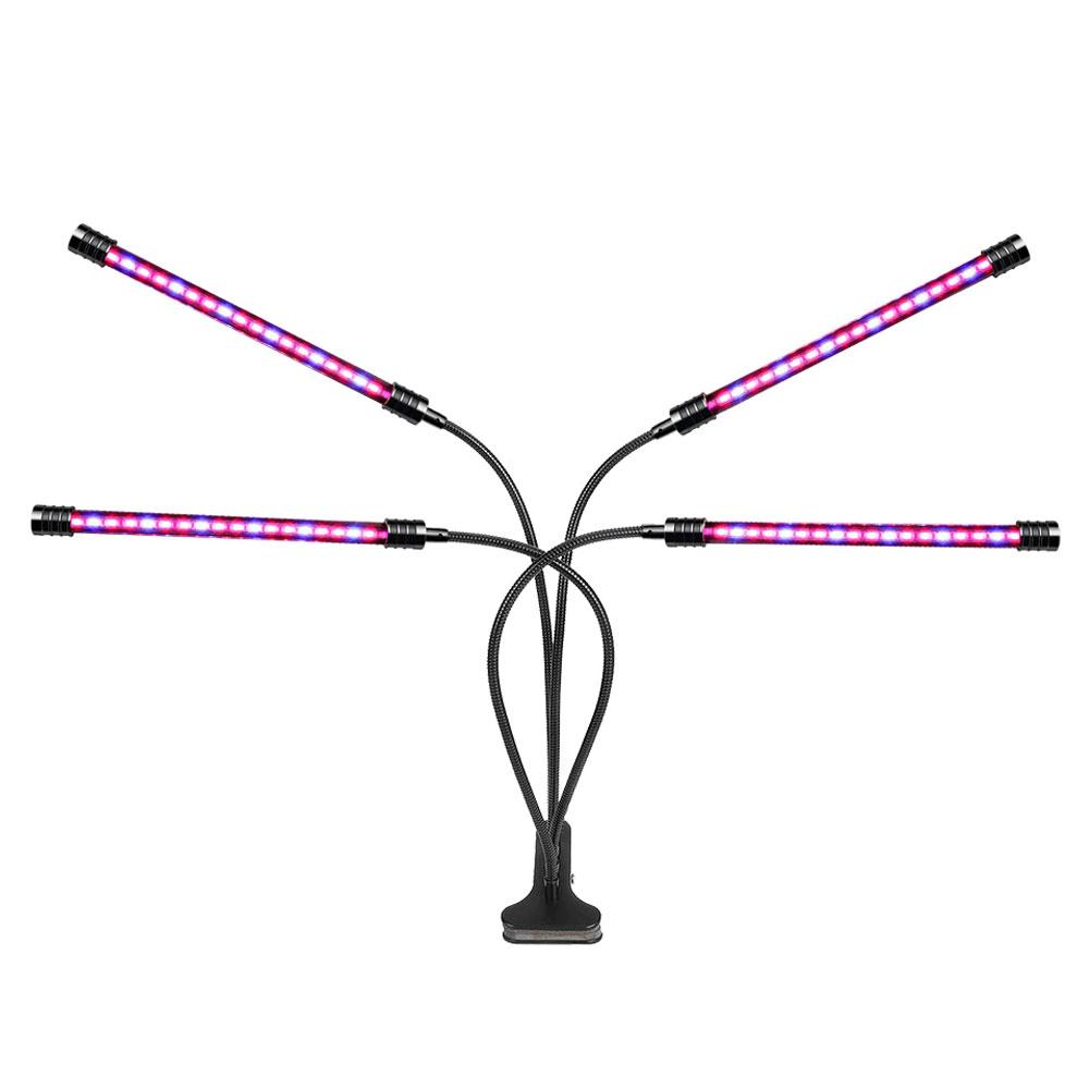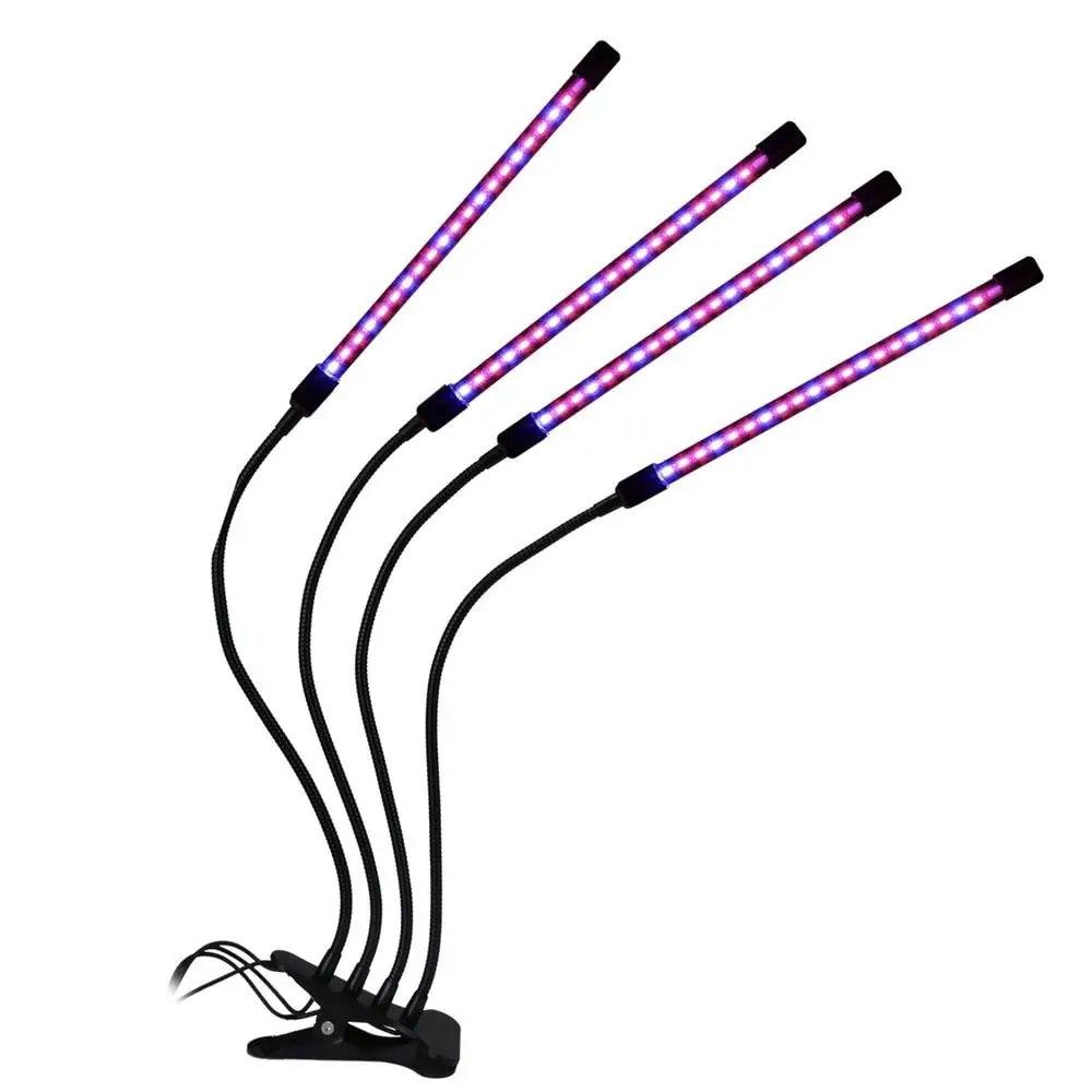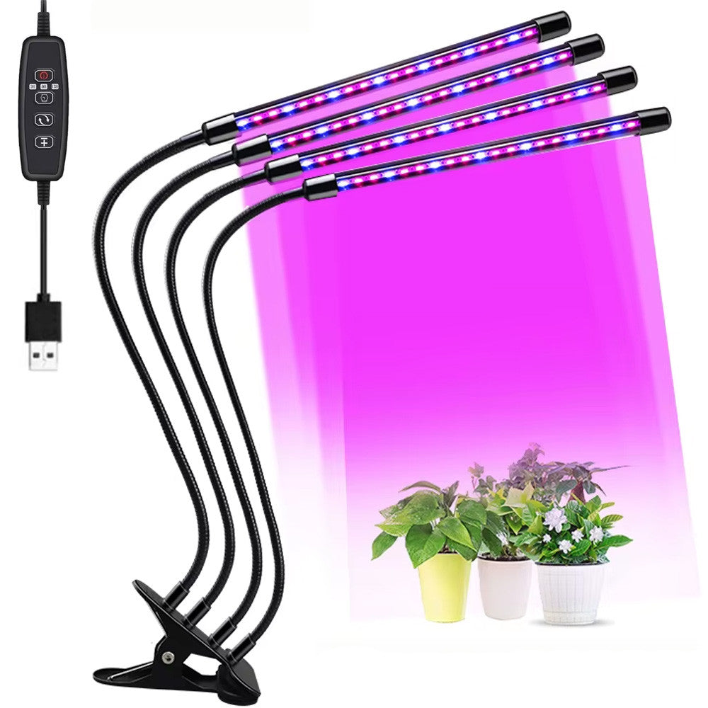 Ультрафіолетова фітолампа з таймером, 4 головки, від USB, 40 Вт / Гнучкий фітосвітильник для рослин