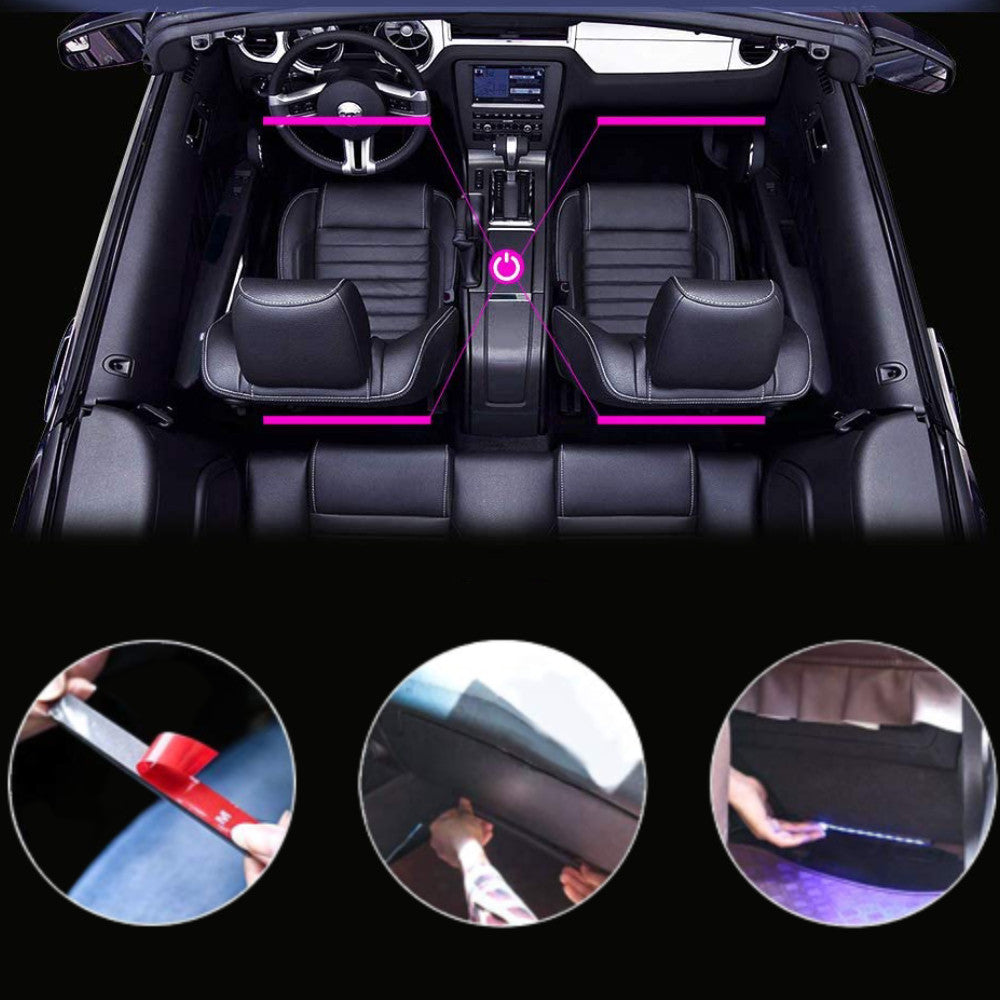 Підсвічування в машину під ноги - економічна і довговічна - близько 50000 годин роботи. Також, світлодіодні стрічки універсальні – їм можна надати будь-якої форми, плавно регулювати яскравість та кут освітлення.