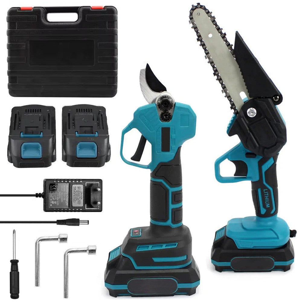 Комплект 2в1: ланцюгова міні-пила + садовий секатор - це універсальний набір для швидкого та комфортного догляду за вашим садом. Акумуляторна пилка чудово підходить для обрізання гілок, підготовки дров та невеликого ремонту, а садовий секатор дозволяє легко та акуратно обрізати чагарники, виноградну лозу або м'яку деревину. Інструменти виготовлені з високоякісних матеріалів, що гарантує їхню міцність та довговічність.