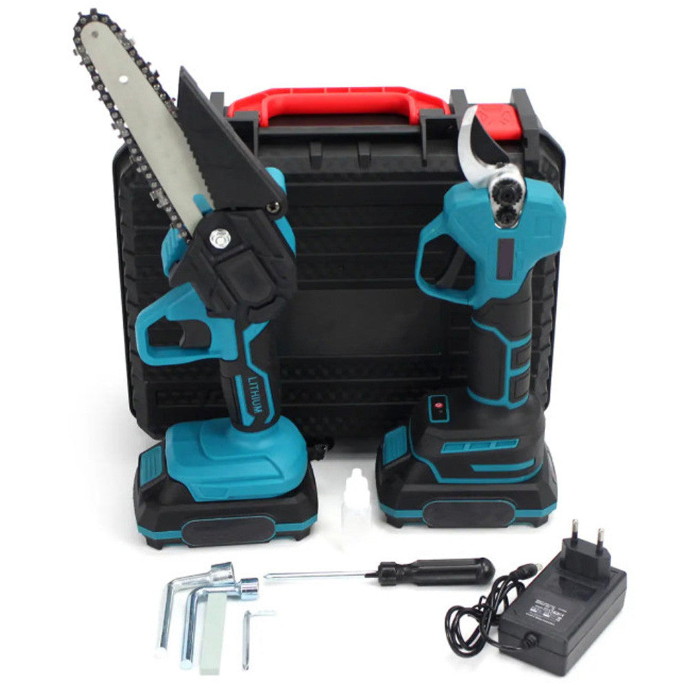 Універсальний комплект 2в1: Ланцюгова пила + Секатор акумуляторний, 2 АКБ 48V, в кейсі / Акумуляторна міні пила / Садовий секатор