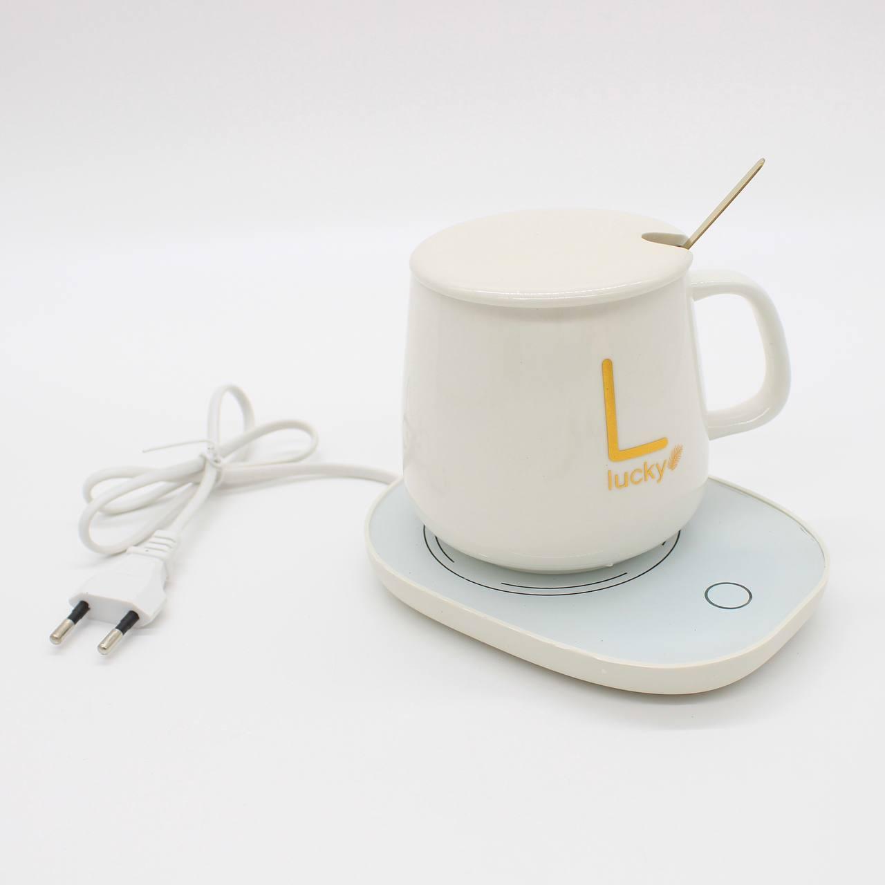 Чашка 400мл на підставці з підігрівом до +55 °С, Біла / Чашка керамічна з ложкою