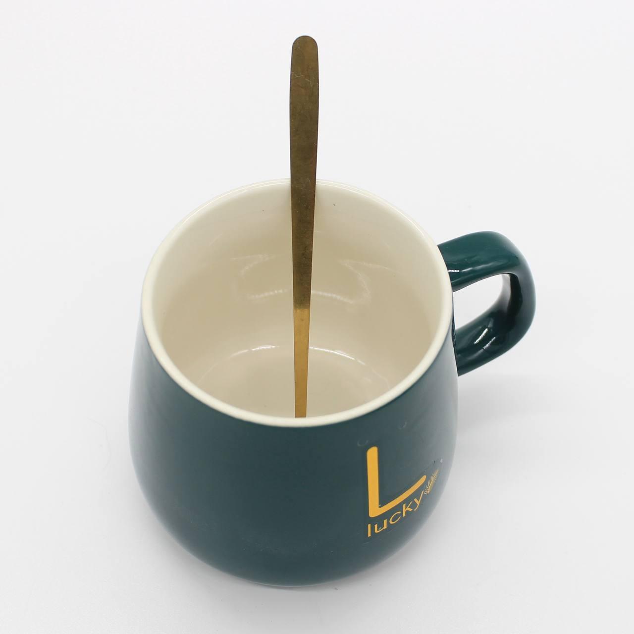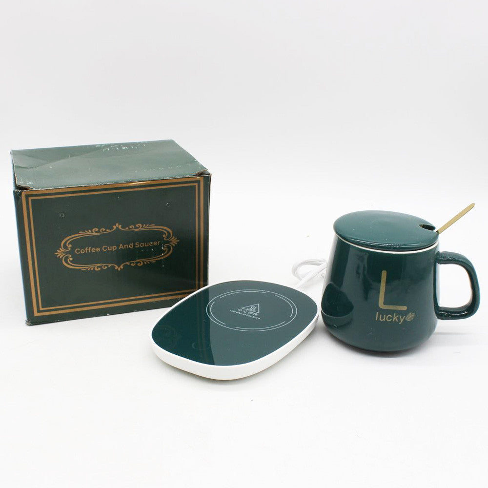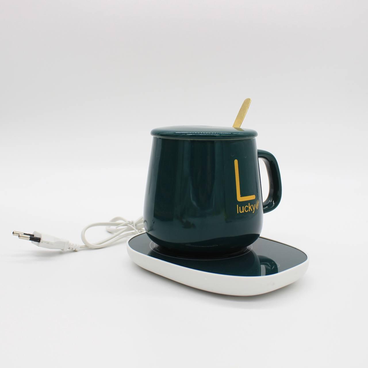 Чашка 400мл на підставці з підігрівом до +55 °С, Зелена / Чашка керамічна з ложкою в подарунковій упаковці