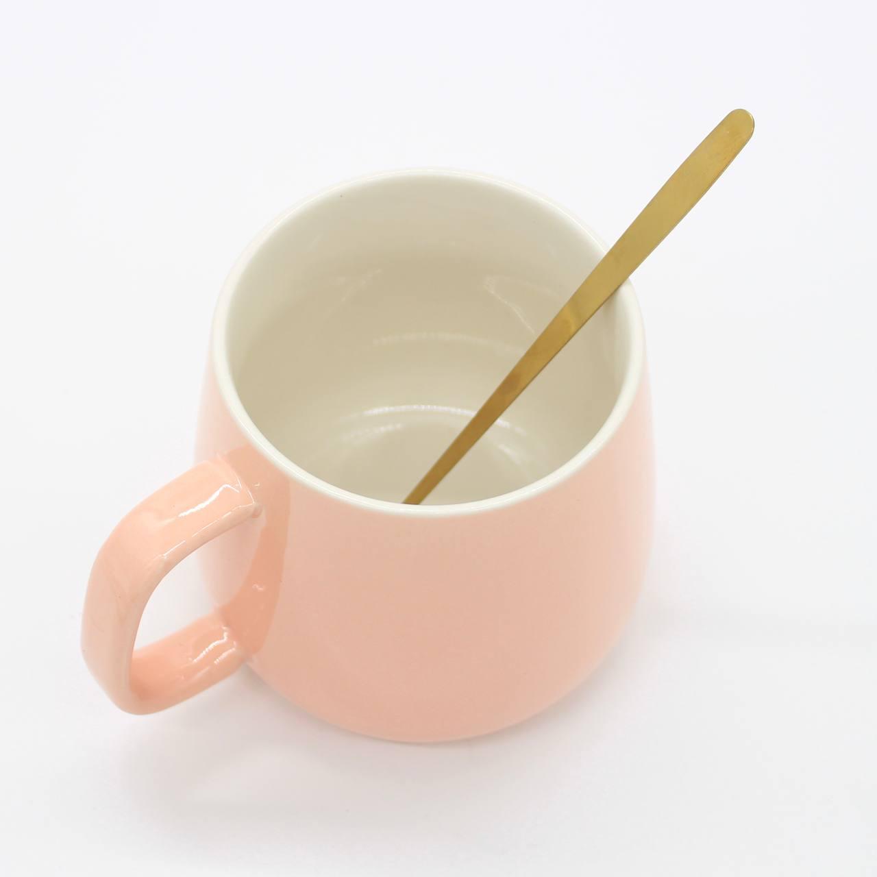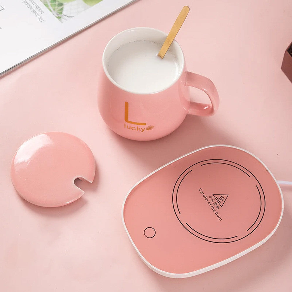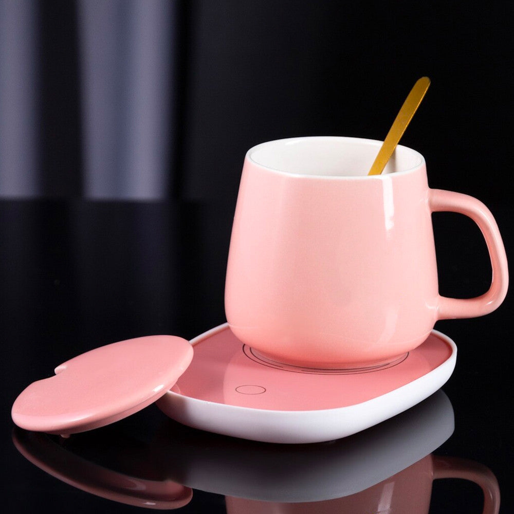 Чашка 400мл на підставці з підігрівом до +55 °С, Рожева / Чашка керамічна з ложкою в подарунковій упаковці