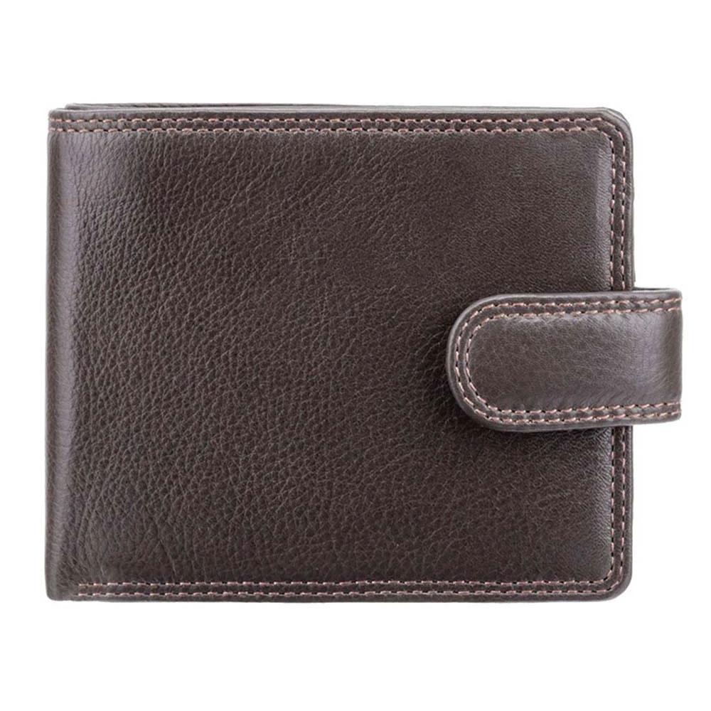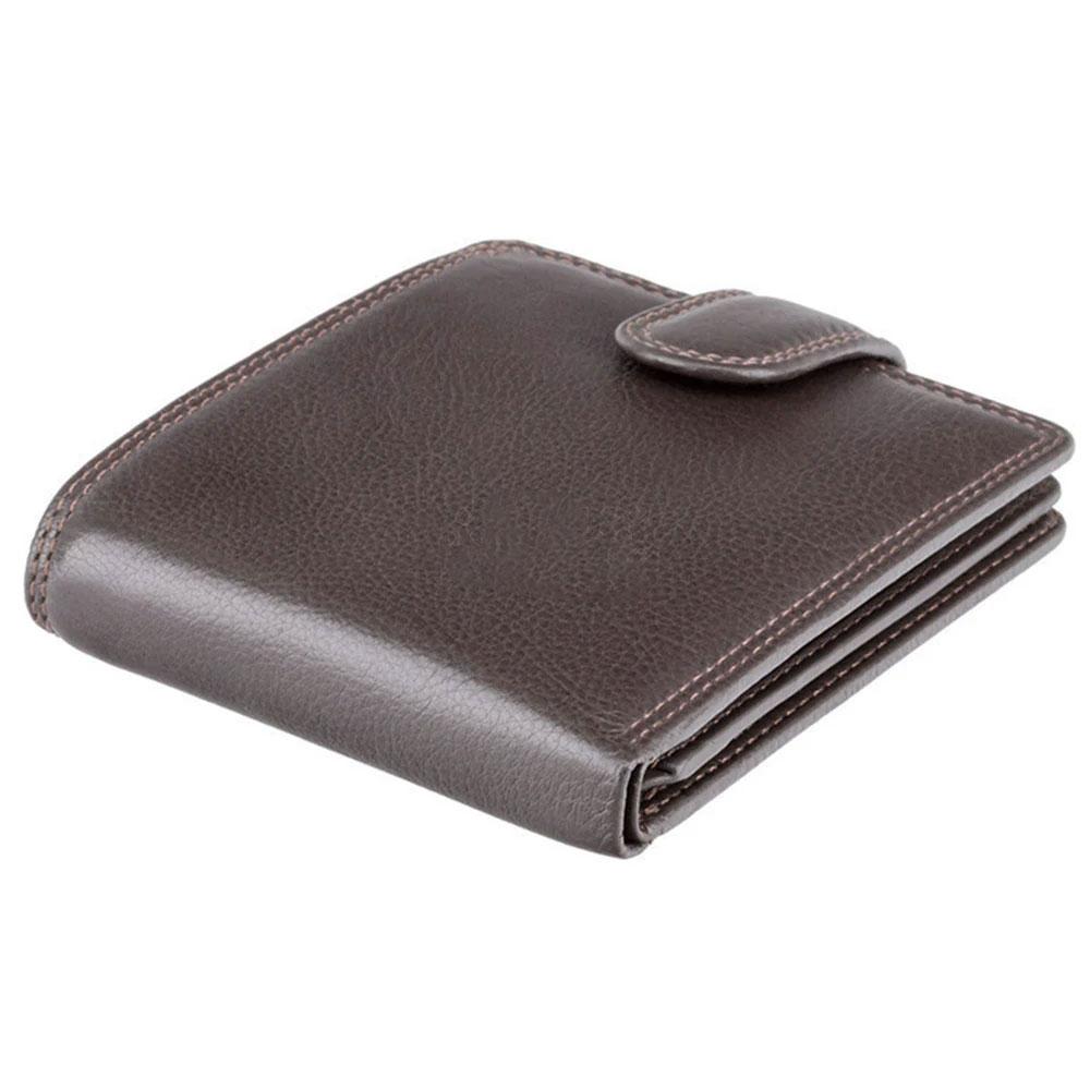 Чоловічий шкіряний гаманець Коричневий, (9х11х2, 5 см) Jinbaolai / Чоловічий портмоне з кнопкою