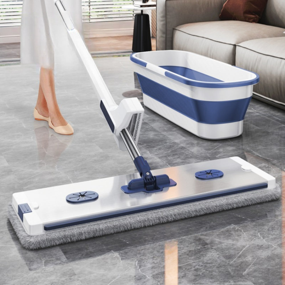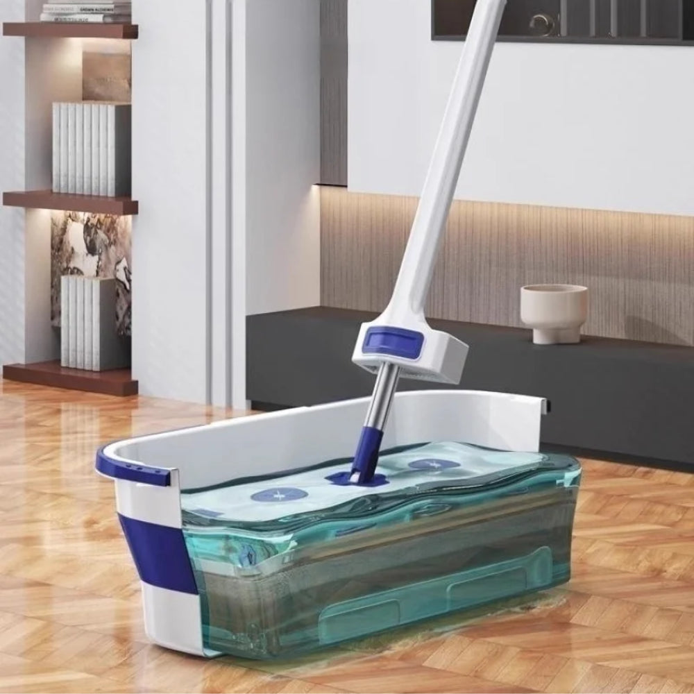 Уявляємо вам швабру з автоматичним віджиманням і складним відром hands-free у стильному біло-синьому виконанні – революційне рішення для швидкого та гігієнічного прибирання! Унікальний механізм віджиму дозволяє легко та ефективно видаляти зайву воду з насадки, не забруднюючи руки. Складне відро – це зручність зберігання та економія простору у вашому будинку.
