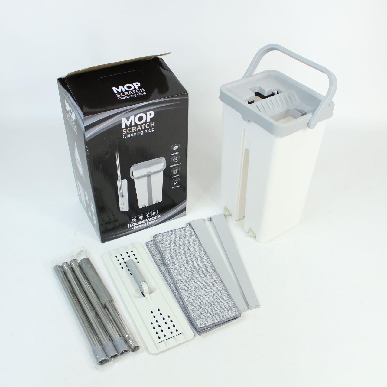 Завдяки відру зі спеціальною кришкою ви з легкістю вимиєте і вичавите ганчірку, не торкаючись до неї руками і не знімаючи її зі швабри. Також у комплект входять дві насадки для швабри із мікрофібри. Швабра з віджиманням не залишає жодних розводів або зайвої води роблячи підлогу ідеально чистою.