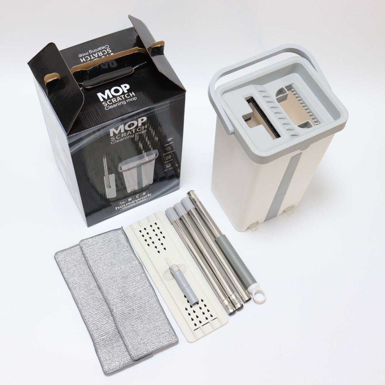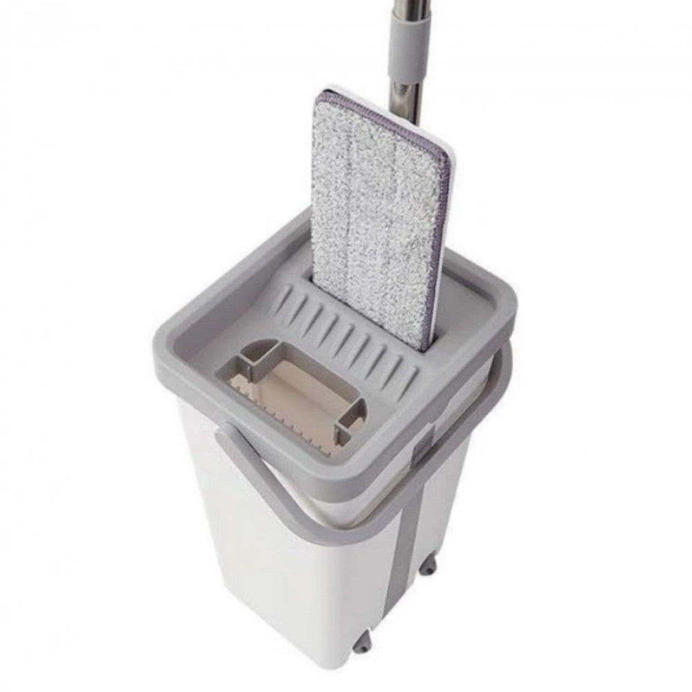 Завдяки відру зі спеціальною кришкою ви з легкістю вимиєте і вичавите ганчірку,не торкаючись до неї руками і не знімаючи її зі швабри. Також у комплект входять дві насадки для швабри із мікрофібри. Швабра з віджиманням не позбавляє жодних розлучень або зайвої води роблячи підлогу ідеально чистою.