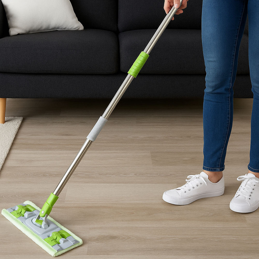 Телескопічна ручка легко регулюється по висоті, дозволяючи вам налаштувати швабру під свій зріст та уникнути болю у спині. Гнучке з'єднання головки швабри забезпечує чудову маневреність, дозволяючи легко дістатися до важкодоступних місць, таких як кути і простір під меблями. Підходить для всіх типів підлогових покриттів – від ламінату та паркету до плитки та лінолеуму.