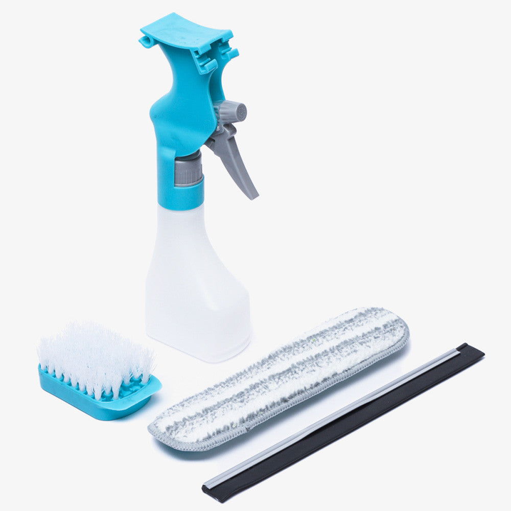 У комплект входить скребок для видалення забруднень, щітка для додаткового очищення, розпилювач для рівномірного нанесення миючого засобу і ємність для води, що робить процес миття вікон максимально швидким і зручним. Ідеально підходить для домашнього та професійного використання.