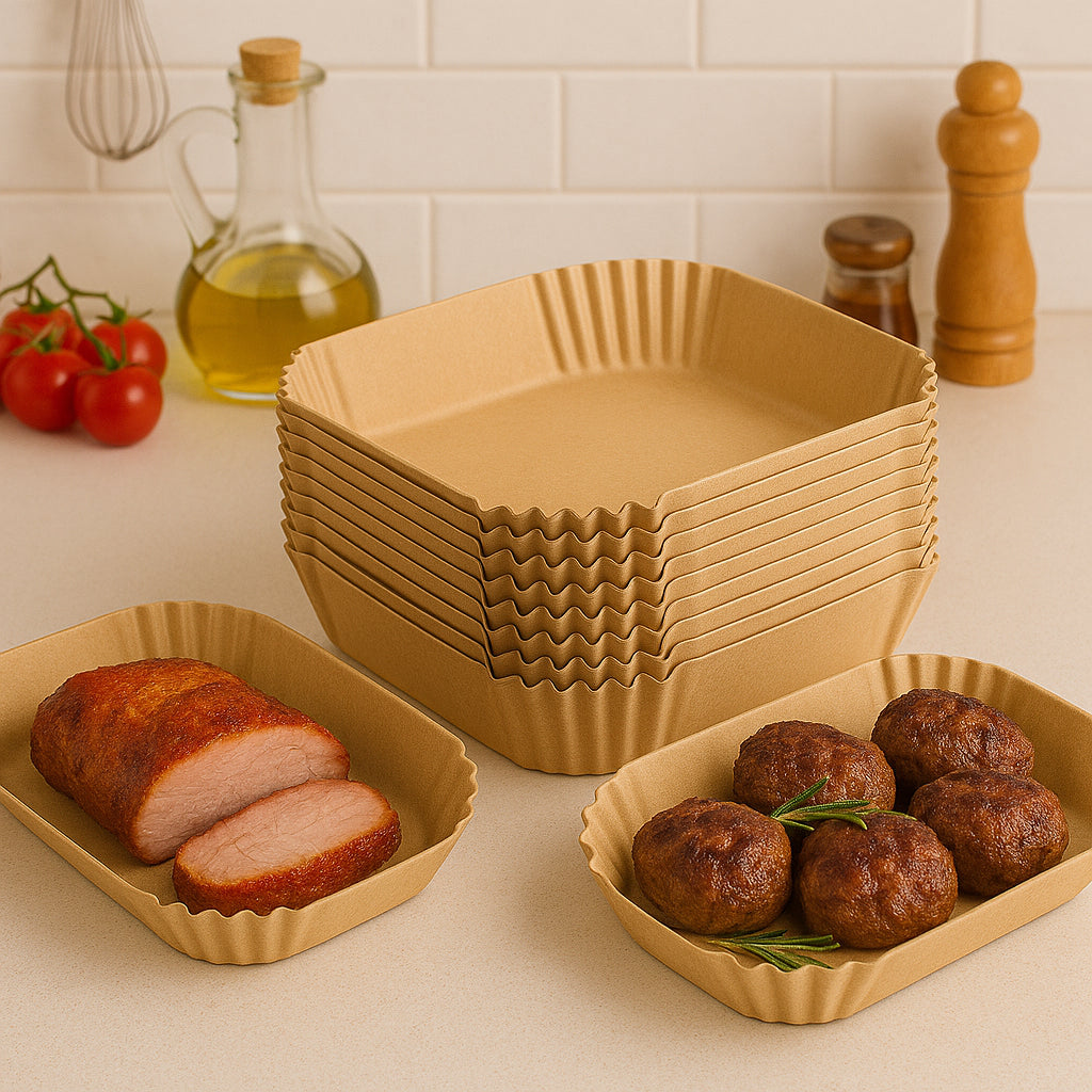 Пергаментна форма для аерогрилю - це практичний аксесуар, який робить процес приготування ще зручнішим. Вона захищає чашу аерогрилю від жиру та залишків їжі, зберігаючи техніку чистою. Завдяки антипригарним властивостям їжа не прилипає до поверхні та готується рівномірно. Форма виготовлена з термостійкого пергаменту, який витримує високі температури без деформації.